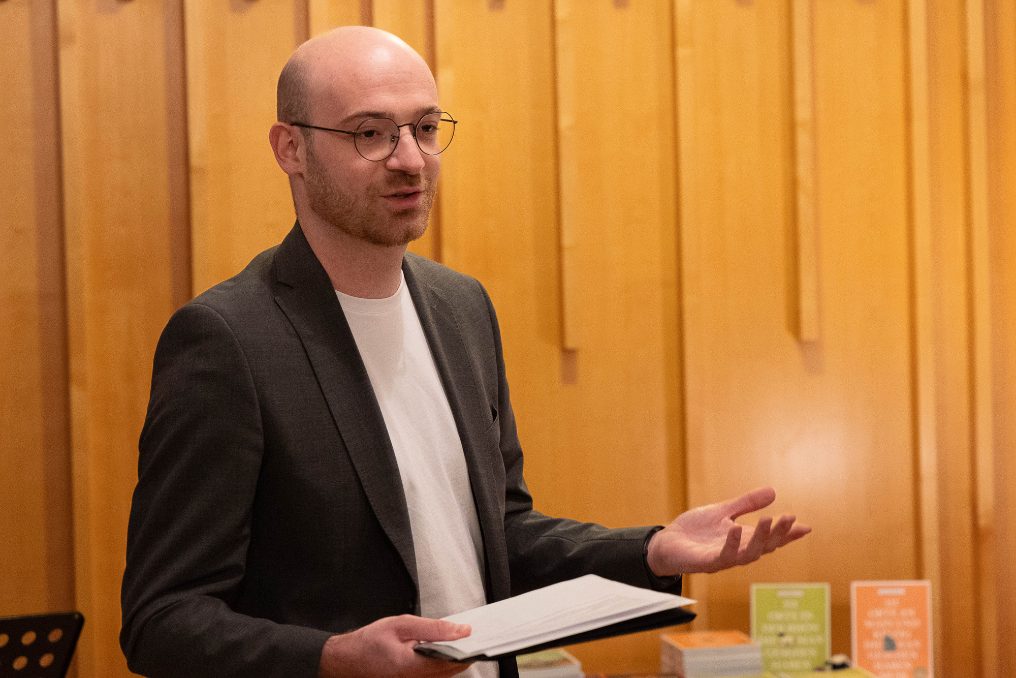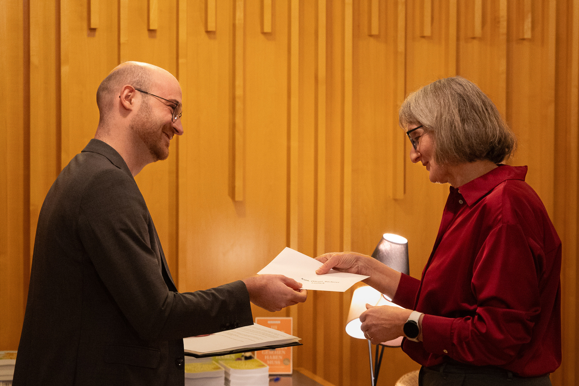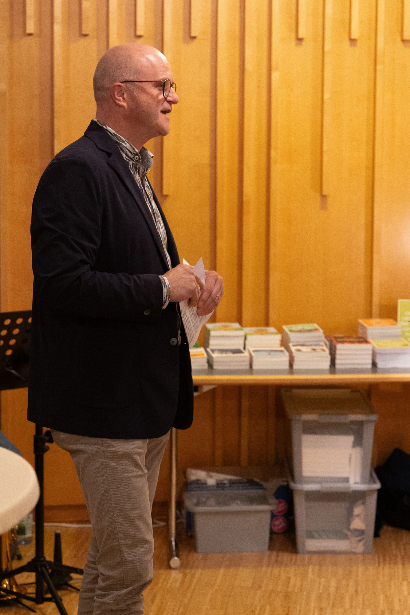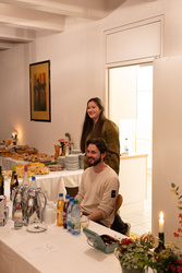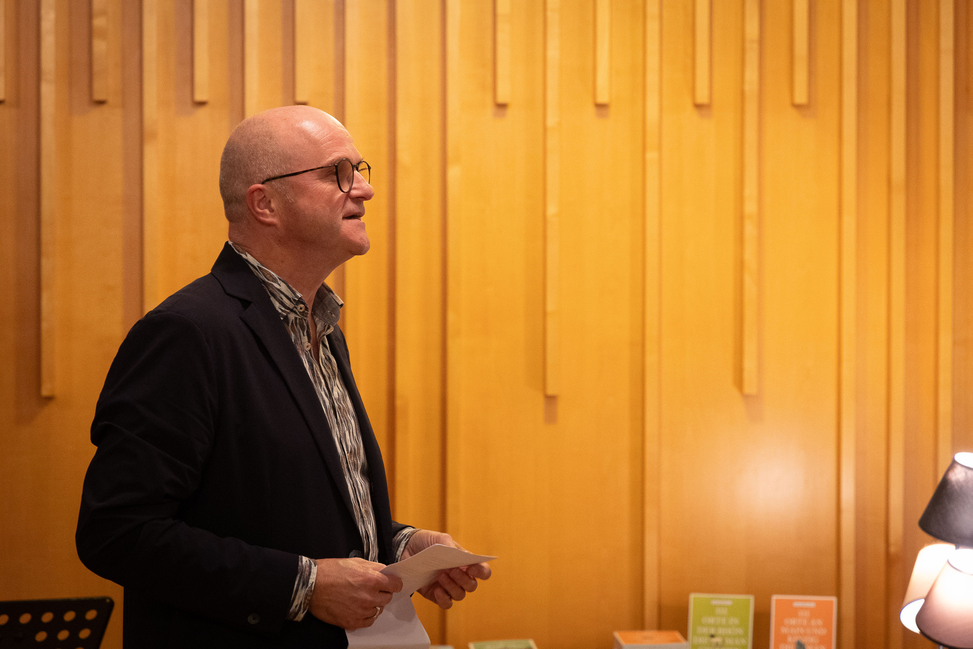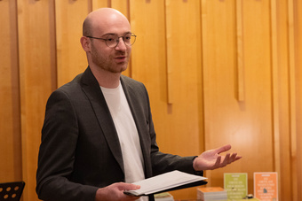 Nach den Reden und einer kleinen Stärkung an dem gut bestückten Buffet mit selbst gemachten Leckereien, und dem Getränkestand unter der Leitung des jungen Küchenteams, begann die Lesung, die die zahlreichen Gäste gut amüsierte.