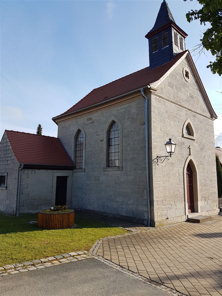 Schon im 17. Jahrhundert stand ein „Käppelein“ am Fußweg von Falsbrunn nach Prölsdorf. Im Jahre 1775 wurde ein erstes Gotteshaus direkt an der Straße erbaut, das 1790 zwei Glocken bekam und 1800 einen Kreuzweg. Schon im Jahre 1900 wurde ein Kirchenbauverein gegründet. 1957 wurde am 9.März das alte Gotteshaus abgebrochen und am Christkönigsonntag durch Dekan Bauer benediziert.